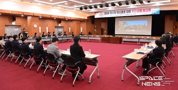 스페이스뉴스 스페이스뉴스 기자 | 진주시는 23일 시청 2층 시민홀에서 ‘2026 아시아 이스포츠 대회’ 운영 대행 용역사(SOOP)와 관련 부서 공무원 등 40여 명이 참석한 가운데 부서별 추진상황 보고회를 개최했다고 밝혔다.
