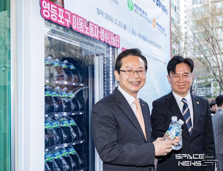 스페이스뉴스 스페이스뉴스 기자 | 영등포구는 지난 20일, 김영훈 고용노동부 장관이 당산동에 위치한 ‘이동노동자 쉼터 1호점’을 방문해 현장을 살피고, 관계기관과 함께 이동노동자 온열질환 예방을 위한 생수 나눔 업무협약을 체결했다고 밝혔다.