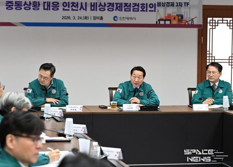 스페이스뉴스 스페이스뉴스 기자 | 인천광역시는 중동 전쟁 장기화에 따른 지역경제 피해를 최소화하고 선제적인 대응 방안을 논의하기 위해 유정복 시장이 직접 주재하는‘비상경제 점검회의’를 지난 3월 12일에 이어 3월 24일 아침 시청 본관 장미홀에서 개최했다고 밝혔다.