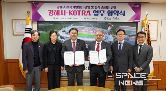 스페이스뉴스 스페이스뉴스 기자 | 김해시는 24일 김해시청에서 대한무역투자진흥공사와 김해AI무역지원센터 운영을 위한 상호협력 업무협약을 체결했다.