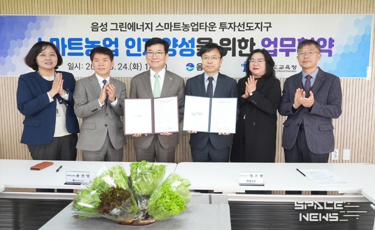 스페이스뉴스 스페이스뉴스 기자 | 음성군은 24일 H&A 스마트팜과 그린에너지 스마트농업타운 대상지 일원에서 충청북도교육청과 함께 지역 교육발전 방향과 미래 인재 양성 협력방안을 모색하기 위한 정책간담회를 열고 공동협약을 체결했다.