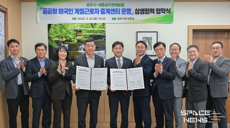 스페이스뉴스 스페이스뉴스 기자 | 공주시는 지난 24일 시청 상황실에서 세종공주원예농협과 농촌 일손 부족 해소를 위한 ‘공공형 외국인 계절근로자 중개센터 운영 업무협약’을 체결했다.
