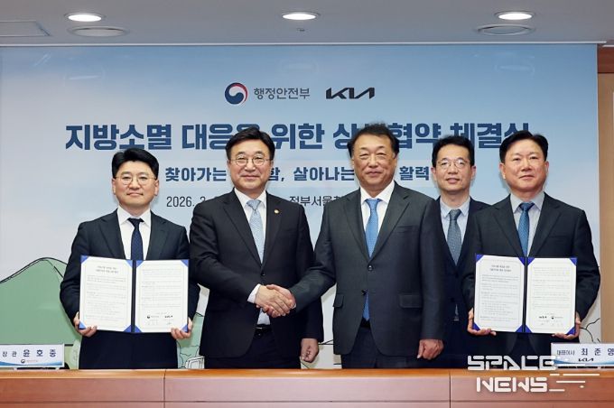 스페이스뉴스 스페이스뉴스 기자 | 행정안전부는 3월 24일, 정부서울청사에서 기아와 ‘지방소멸 대응을 위한 상생 업무협약’을 체결했다고 밝혔다.