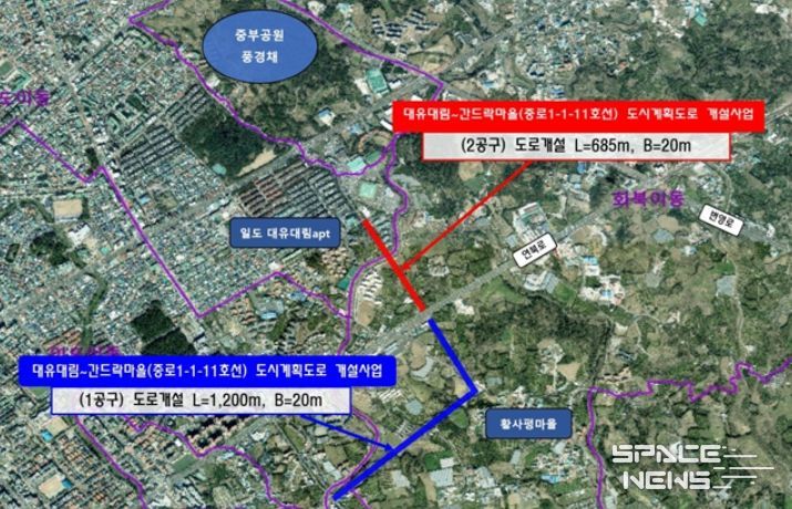 스페이스뉴스 스페이스뉴스 기자 | 제주시는 동부권 교통혼잡 완화와 균형 있는 도시기반 확충을 위해 대유대림~간드락마을(중로1-1-11호선) 도시계획도로(2공구) 개설공사를 4월 중 착수한다.