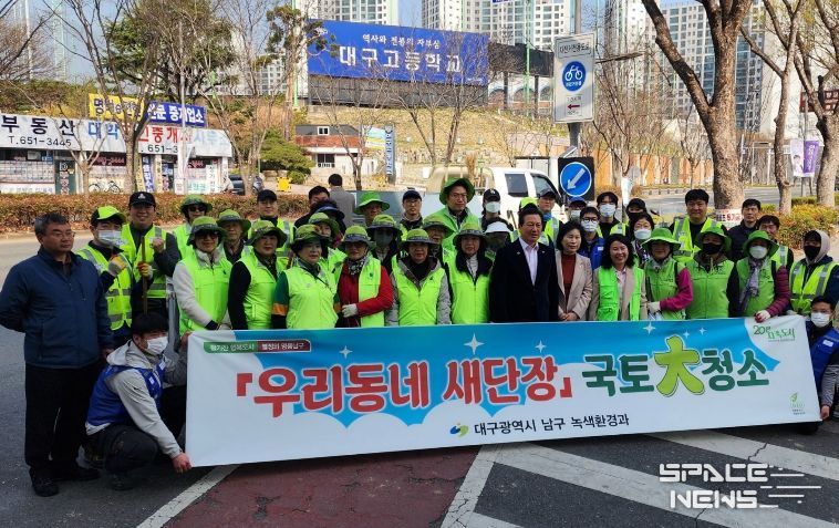 스페이스뉴스 스페이스뉴스 기자 | 대구 남구는 지난 3월 18일부터 주민들이 활기찬 봄을 만끽할 수 있도록 중앙대로 화단과 무단투기 취약지를 집중 청소하는 2026년 새봄맞이 국토대청소 및 우리동네 새단장에 나섰다.