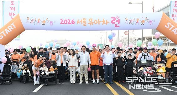 스페이스뉴스 스페이스뉴스 기자 | 오세훈 서울시장은 28일 오전 8시 광화문광장에서 열린 ‘2026 유아차 런(Run)’에 참석해 5천여 가족에게 응원 메시지를 전하고 여의도공원까지 안전하게 달려줄 것을 당부했다.