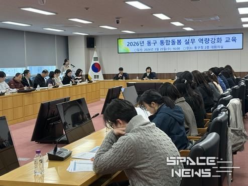 동구는 지난 25일 동구청 대회의실에서 12개 동 행정복지센터 사무장 및 담당자, 민간 서비스 제공기관 관계자 등을 대상으로 ‘2026년 동구 통합돌봄 실무 역량 강화 교육’을 실시하며 현장 대응력을 선제적으로 높였다.