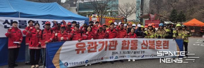 스페이스뉴스 스페이스뉴스 기자 | 인천시 중구는 산불 위험이 큰 봄철을 맞이해 지난 30일 월미산 일원에서 지역 유관기관과 ‘2026년도 산불 진화 합동훈련’을 진행하고, 유기적 협력 체계를 구축했다고 밝혔다.