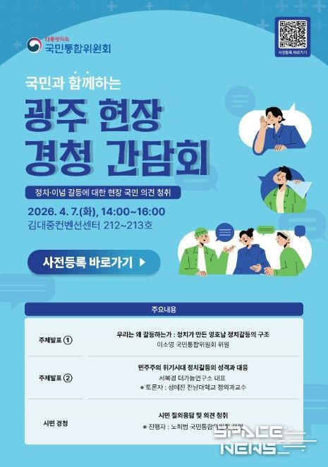 스페이스뉴스 스페이스뉴스 기자 | 대통령직속 국민통합위원회는 4월 7일 오후 2시부터 김대중컨벤션센터(광주 서구)에서 ‘국민과 함께하는 광주 현장 경청 간담회’를 개최한다.