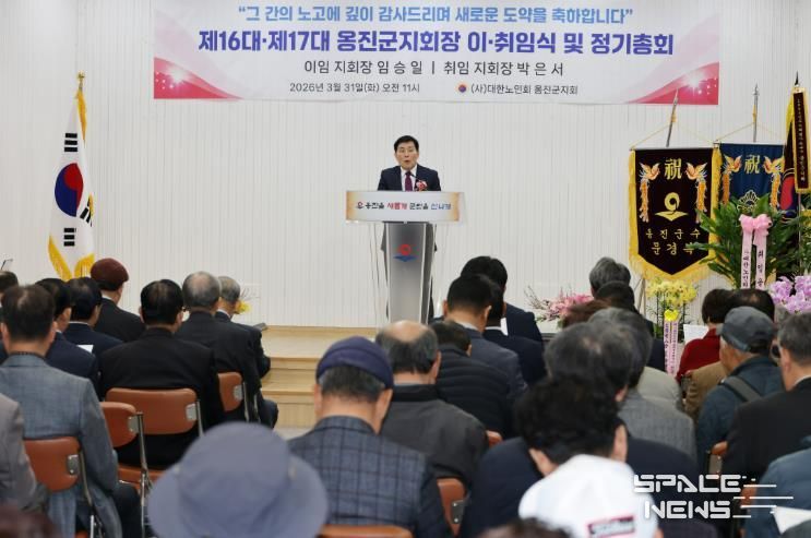 스페이스뉴스 스페이스뉴스 기자 | 옹진군은 지난 31일 옹진군 농업기술센터에서 대한노인회 옹진군지회 ‘2026년 정기총회 및 제17․18대 지회장 이·취임식’이 개최됐다고 밝혔다.