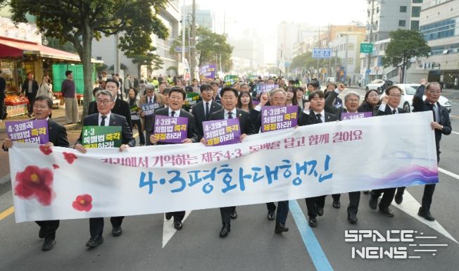 스페이스뉴스 스페이스뉴스 기자 | 제주특별자치도는 제78주년 4·3희생자 추념식을 하루 앞둔 2일, 제주 도심이 세대와 지역을 아우르는 거대한 평화의 물결로 뒤덮였다.