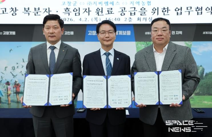 스페이스뉴스 스페이스뉴스 기자 | 고창군이 지난 2일 오후 군청2층 회의실에서 고창군·㈜지비엠에스·지역농협 5개소와 ‘고창 복분자·흑임자 원료 공급 및 상생발전 업무협약(MOU)’을 체결했다.