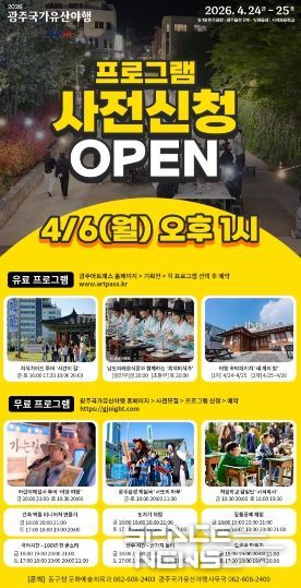 스페이스뉴스 스페이스뉴스 기자 | 광주 동구는 오는 24~25일 이틀간 5·18민주광장, 서석초등학교, 광주읍성 유허 등 국가유산 일원에서 열리는 ‘광주 국가유산 야행’ 프로그램의 사전 참여자를 모집한다고 밝혔다.