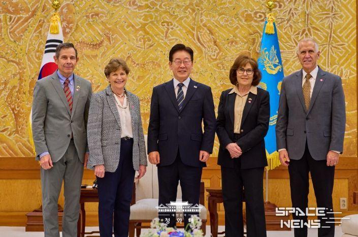 스페이스뉴스 스페이스뉴스 기자 | 이재명 대통령은 4월 2일 오후 청와대에서 진 섀힌(Jeanne Shaheen) 상원 외교위원회 간사 등 공화·민주 양당 의원으로 구성된 미국 상원의원 대표단을 접견했다. 이 대통령과 미 대표단은 한미동맹 및 한반도 문제를 비롯해 중동 전쟁의 안보적·경제적 파장과 대응 방안에 대해 심도 있는 의견을 교환하고, 향후 경제적 여파 대응 과정에서 한미가 긴밀히 소통해 나가는 것이 중요하다는 점에 뜻을 같이 했다.