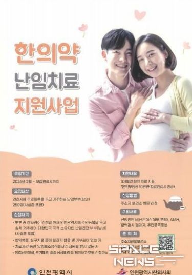 스페이스뉴스 스페이스뉴스 기자 | 부평구보건소는 난임부부의 건강한 임신 준비를 돕기 위한 ‘한의약 난임치료 지원사업’ 대상자를 모집 중이라고 6일 밝혔다.