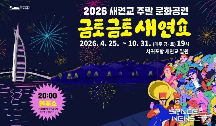 스페이스뉴스 스페이스뉴스 기자 | 서귀포시는 2025년 대표 야간 관광콘텐츠로 자리 잡은 ‘금토금토 새연쇼’가 올해는 4월 25일부터 10월 31일까지 매주 금·토요일 저녁 7시부터 8시 40분까지 새연교 일원에서 진행될 예정이라고 밝혔다.