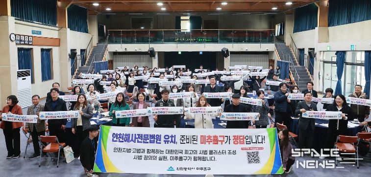 스페이스뉴스 스페이스뉴스 기자 | 인천 미추홀구가 ‘인천해사국제상사법원의 미추홀구 유치’를 향한 42만 구민의 압도적인 의지를 확인하며 유치 추진에 박차를 가하고 있다고 7일 밝혔다.