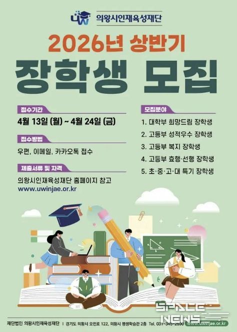 스페이스뉴스 스페이스뉴스 기자 | 의왕시인재육성재단이 2026년 상반기 장학생을 모집한다.