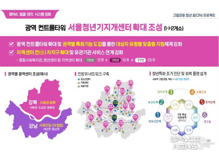 스페이스뉴스 스페이스뉴스 기자 | 불안정한 미래와 개인화된 사회 분위기로 인해 청년들의 고립과 은둔이 심화되고 있는 가운데, 2023년 전국 최초로 고립은둔청년 종합대책을 내놓은 서울시가 ‘사후 지원’을 넘어 ‘발생 예방’으로 정책의 방향을 전면 전환한다. 아동·청소년기에 고립은둔 가능성을 조기진단해 선제적으로 대응하고 가족과 함께 예방과 회복을 이어가는 지원체계 가동이 핵심이다.