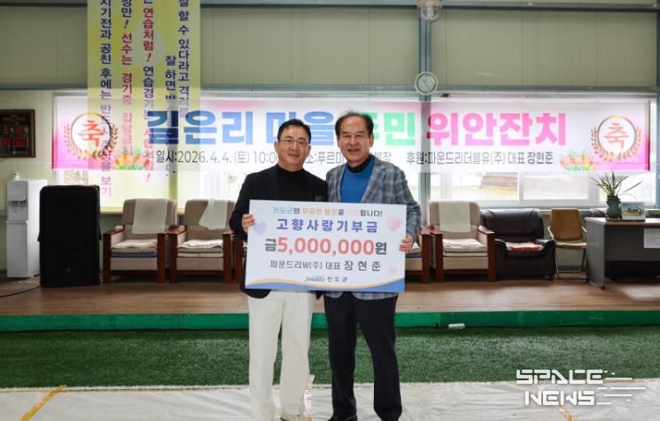 스페이스뉴스 스페이스뉴스 기자 | 진도군 지산면 길은리 출신인 장현준 파운드리더블유(주) 대표가 고향인 길은마을에서 열린 어르신 위안잔치에 참석해, 지역 주민들과 소통하며 따뜻한 나눔의 시간을 가졌다.