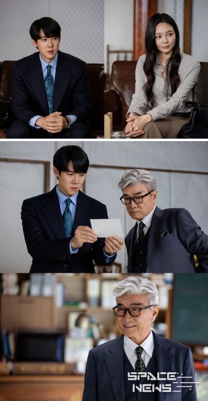이 가운데 오늘(9일) 공개된 스틸컷에는 두 변호사가 신이랑 법률사무소에서 포착돼 이목을 집중시킨다. 대형 로펌 ‘태백’을 나온 한나현이 신이랑의 파트너로 새 출발한 예감을 들게 하는 장면이다. 여기에 두 사람이 함께 바라보고 있는 사람이 눈길을 끈다. 다름 아닌 이덕화가 중후한 수트 차림으로 범접할 수 없는 아우라를 뿜어내고 있기 때문. 신이랑과 함께 의문의 사진을 뚫어지게 응시하는 그가 과연 산 사람으로 사건을 의뢰하러 온 것인지, 아니면 신이랑의 눈에만 보이는 새로운 망자인지에 대한 궁금증이 폭발하고 있다.