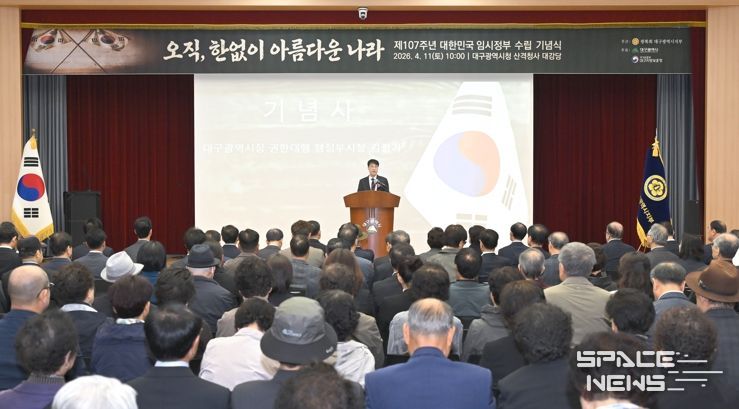 스페이스뉴스 스페이스뉴스 기자 | 대구광역시는 대한민국 임시정부 수립 제107주년을 맞아 4월 11일 오전 10시, 시청 산격청사 대강당에서 기념식을 거행했다.