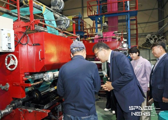 스페이스뉴스 스페이스뉴스 기자 | 장금용 창원특례시장 권한대행은 16일 중동 사태 장기화로 나프타 수급 차질이 우려되는 상황에서 대안으로 주목받는 재생원료를 활용해 종량제봉투를 생산하는 관내 기업 ‘인테크’를 방문했다.