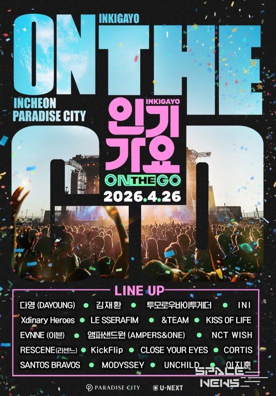 오는 4월 26일(일) 인천 파라다이스시티에서 개최되는 ‘인기가요 ON THE GO’는 SBS 대표 음악 프로그램 ‘인기가요’의 스페셜 공연 프로젝트로, 기존 스튜디오 중심의 음악 방송을 넘어 팬들이 있는 곳으로 직접 찾아가는 콘셉트로 기획됐다. 생방송 현장의 에너지와 공연의 몰입감을 결합한 새로운 형태의 K-POP 공연으로, 아티스트와 관객이 더욱 가까이 호흡하는 특별한 경험을 선사할 예정이다.