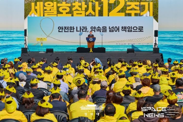 스페이스뉴스 스페이스뉴스 기자 | 이재명 대통령과 김혜경 여사는 16일 경기도 안산 화랑유원지에서 열린 '4·16 세월호 참사 12주기 기억식'에 참석해, 세월호 침몰로 인한 희생자 304명을 추모하고 유가족을 위로했다.