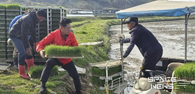 스페이스뉴스 스페이스뉴스 기자 | 양평군은 지난 15일 지평면 수곡리에 위치한 전경복 농가에서 올해 첫 모내기를 실시했다고 밝혔다.