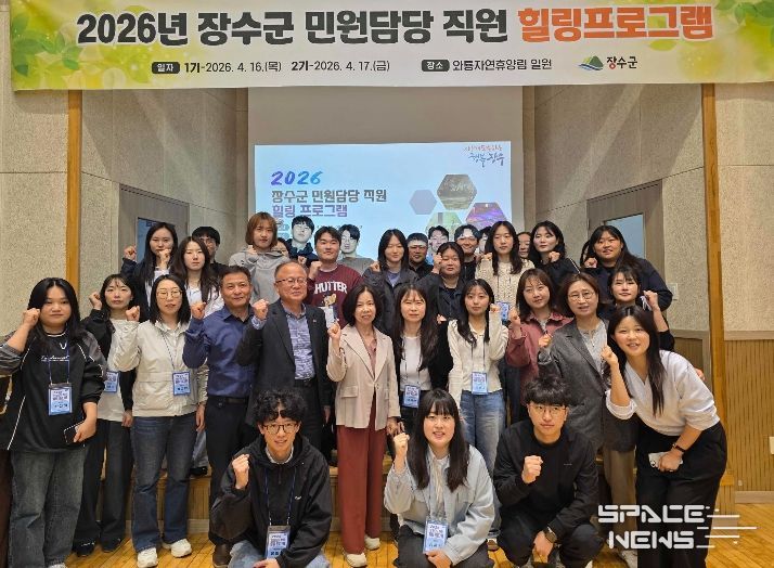 스페이스뉴스 스페이스뉴스 기자 | 장수군은 지난 16일부터 17일까지 와룡자연휴양림 일원에서 민원 담당 공무원의 직무 스트레스 해소와 심신 치유를 위한 ‘2026년 민원담당 직원 힐링 프로그램’을 실시했다고 밝혔다.