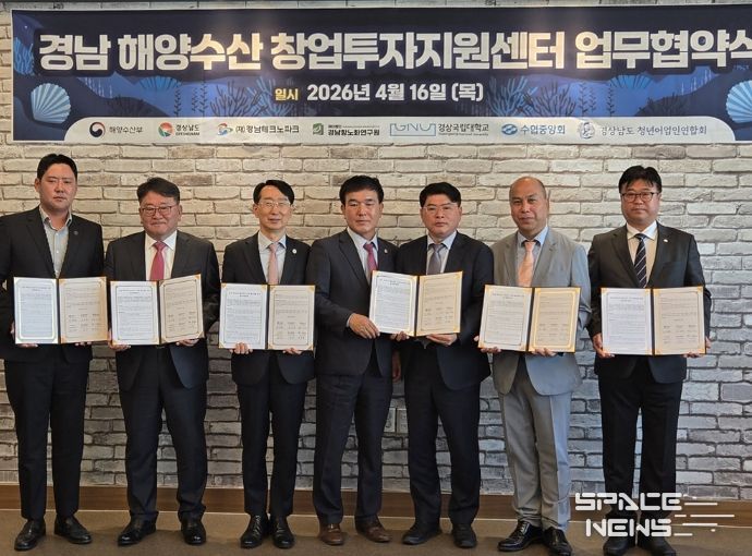 스페이스뉴스 스페이스뉴스 기자 | 경상국립대학교 해양과학대학은 경상남도 해양수산 창업투자 활성화를 위해 4월 16일 경남테크노파그에서 경상남도, 경남테크노파크, 경남항노화연구원, 수협중앙회 경남본부, 경상남도 청년어업인연합회 등과 업무협약(MOU)을 체결했다.