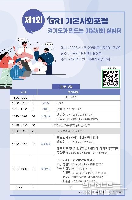 스페이스뉴스 스페이스뉴스 기자 | 경기연구원은 오는 23일 오후 3시 수원컨벤션센터 403호에서 ‘경기도가 만드는 기본사회 실험장’을 주제로 ‘제1회 GRI 기본사회포럼’을 개최한다.
