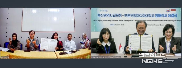 스페이스뉴스 스페이스뉴스 기자 | 부산광역시교육청은 지난 17일 인도네시아 부톤무함마디아대학교(총장 와 오데 알 자릴리아니, Wa Ode Al Zarliani)와 ‘한국어 교육 활성화 및 문화교류 증진을 위한 양해각서’를 온라인 화상회를 통해 체결했다고 밝혔다.