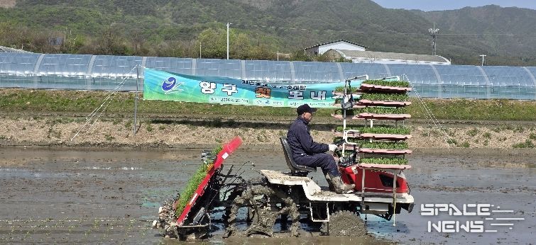 스페이스뉴스 스페이스뉴스 기자 | 양구군이 21일 오전, 양구읍 학조리에서 올해 첫 모내기 행사를 진행하며 본격적인 영농철의 시작을 알렸다.