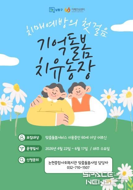 스페이스뉴스 스페이스뉴스 기자 | 인천시 남동구보건소가 자연 속 농업 활동을 활용한 치매 예방 프로그램 ‘기억돌봄 치유농장’을 올해부터 정식 사업으로 확대 운영한다.