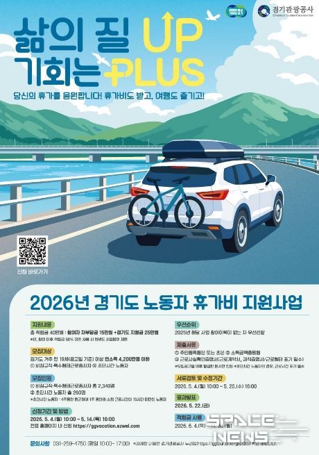 스페이스뉴스 스페이스뉴스 기자 | 경기도가 경제적 부담으로 휴식을 포기했던 비정규직과 특수형태근로종사자에게 휴가비를 지원하는 ‘취약노동자 휴가비 지원사업’ 참여자를 5월 4일부터 14일까지 모집한다.