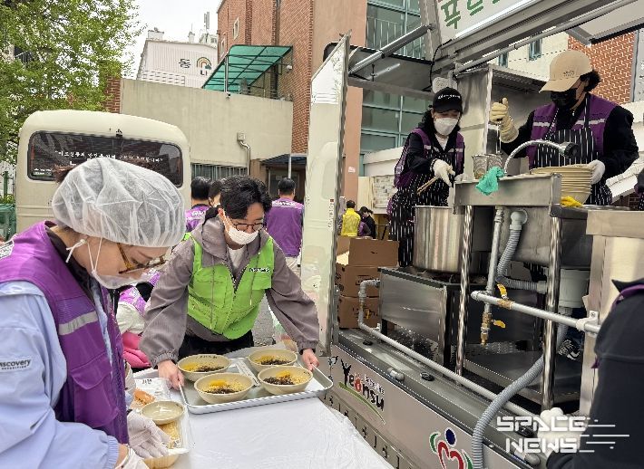 스페이스뉴스 스페이스뉴스 기자 | 연수구자원봉사센터는 21일에 청학노인복지관에서 ‘푸드트럭 온기나눔 짜장차 무료급식’ 활동을 진행했다.