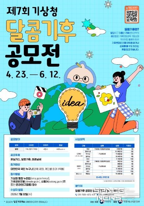 올해로 일곱 번째를 맞은 이번 공모전은 4월 23일부터 6월 12일까지 기상청 누리집과 기후정보포털 및 소통24 누리집에 안내되며, 공모전 전용 창구를 통해 대한민국 국민 누구나 참여할 수 있다.