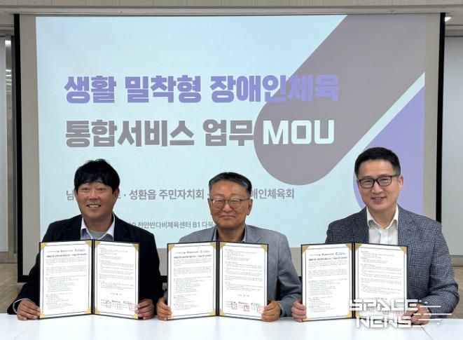 스페이스뉴스 스페이스뉴스 기자 | 천안시장애인체육회는 22일 천안반다비체육센터에서 성환읍 주민자치회, 남서울대학교와 ‘생활밀착형 장애인체육 통합서비스 구축을 위한 업무협약’을 체결했다.
