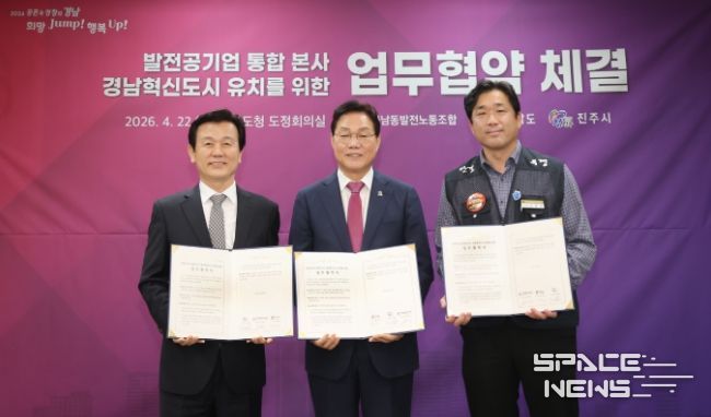 경남도는 22일 진주시, 한국남동발전노동조합과 함께 ‘발전공기업 통합 본사 경남혁신도시 유치’를 위한 업무협약(MOU)을 체결했다. 이번 협약은 발전사 통합이라는 국가 정책 기조에 맞춰, 지자체와 노동계가 실효성 있는 유치 활동과 미래 에너지 전략을 공동으로 실천하기 위해 추진됐다.