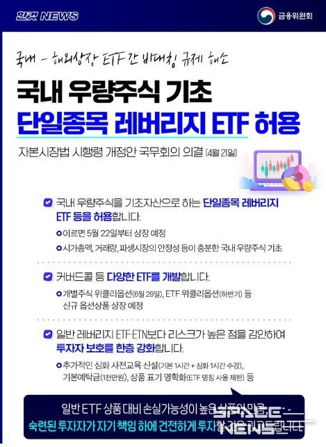 · 국내 우량주식을 기초자산으로 하는 단일종목 레버리지 ETF 등을 허용합니다.
