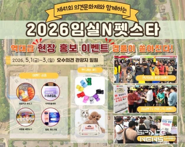 스페이스뉴스 스페이스뉴스 기자 | 임실군이 오는 5월 1일부터 3일까지 임실 오수의견관광지에서 열리는 제41회 의견문화제와 함께하는‘2026 임실N펫스타’에서 반려견과 함께하는 방문객을 위한 맞춤형 현장 이벤트를 선보인다.