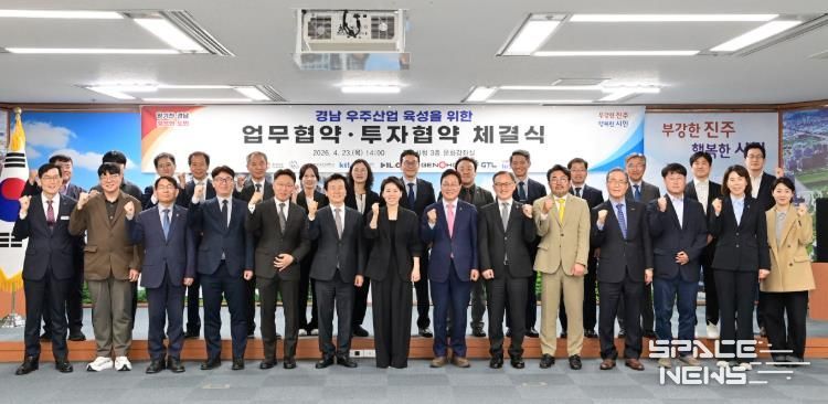 스페이스뉴스 스페이스뉴스 기자 | 경상남도와 진주시는 23일 진주시청 문화강좌실에서 경상국립대학교, 한국산업기술시험원(KTL), 우주 분야 기업 4개 사와 함께 경남 우주산업 육성을 위한 업무협약 및 투자협약을 체결했다.