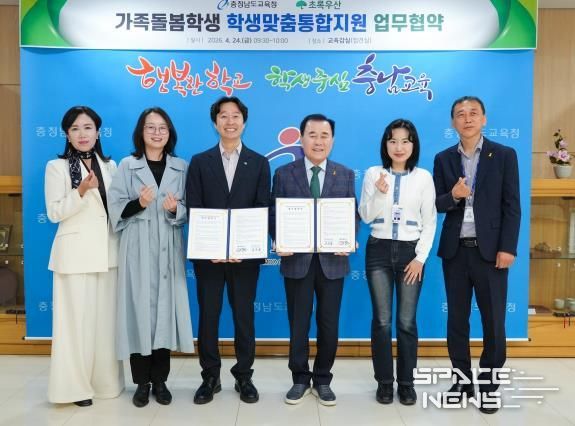 스페이스뉴스 스페이스뉴스 기자 | 충남교육청은 24일, 도교육청 접견실에서 충남교육청 관계자와 초록우산 충남지역본부 관계자들이 참석한 가운데, ‘가족돌봄학생’의 건강한 성장을 지원하기 위한 업무협약을 체결했다고 밝혔다.