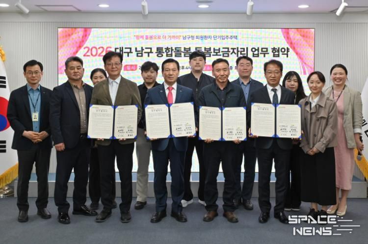 스페이스뉴스 스페이스뉴스 기자 | 대구 남구는 지난 24일 지역사회 통합돌봄 활성화를 위한 『돌봄보금자리』 운영을 위해 LH대구북부권주거복지지사와 남구종합사회복지관 및 대명사회복지관과 업무협약을 체결했다고 밝혔다.