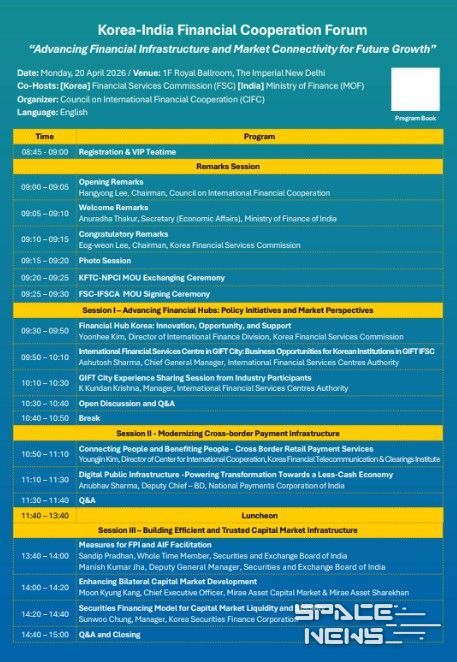 스페이스뉴스 스페이스뉴스 기자 | 금융위원회 이억원 위원장은 4월 19일~25일 4박 7일 일정으로 대통령의 인도·베트남 해외순방에 동행했다. 주요 일정으로는 한국 금융회사 해외진출 및 영업 확대 지원을 위한 고위급 정부회담, 금융중심지 육성 및 국경간 QR 결제망 연동 등을 위한 금융협력포럼 개최, 현지 금융회사·기업 간담회 등을 진행했다. 이번 방문은 고속 성장 중인 두 핵심 파트너 국가와의 ‘전략적 협력 고도화’라는 목표를 금융분야에서 적극 뒷받침하기 위해 마련된 것으로, 인도의 경우 금융위원장으로서는 첫 방문이다.