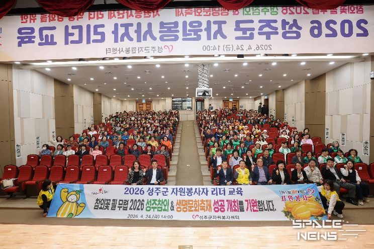 스페이스뉴스 스페이스뉴스 기자 | 경북 성주군자원봉사센터(센터장 이명진)는 지역 공동체의 따뜻한 변화를 이끄는 자원봉사 리더들을 한자리에 모아 의미 있는 교육의 장을 마련했다. 4월 24일 성주군청 대강당에서 열린 '2026 성주군 자원봉사자 리더 교육'은 단순한 역량 강화 교육을 넘어 나눔과 연대의 가치를 되새기고, 다가오는 지역 대표 축제를 함께 준비하는 결속의 자리로 깊은 울림을 전했다.