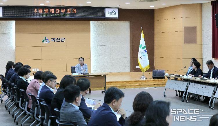 스페이스뉴스 스페이스뉴스 기자 | 송인헌 군수가 27일 군청 대회의실에서 열린 월례간부회의에서 추진중인 농어촌 기본소득 시범사업 추가 공모의 군정 현안으로 제시하고 철저한 준비를 주문했다.