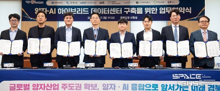 구미시는 4월 27일 경북도청에서 경상북도, ㈜SDT, 구미전자정보기술원, 모빌린트, Anyon Technologies, ㈜마키나락스, ㈜I-ESG, LS증권 등 기술·투자·행정 분야 9개 핵심 기관과 '양자·AI 하이브리드 데이터센터 구축을 위한 업무협약(MOU)'을 체결했다고 밝혔다.